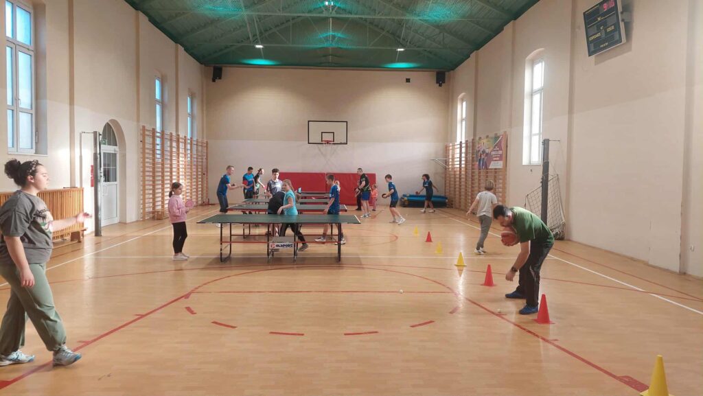 Same zajęcia rozpoczynają się od aktywnej rozgrzewki, a dodatkowo nasi uczestnicy mogą pograć m.in. w koszykówkę czy wykonać wiele ćwiczeń koordynacyjno-ruchowych. Nie zabrakło również gry w tenisa stołowego!